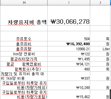 유지비 총액 중 대략 절반정도가 유류비로 소모되었으며 도대체 뭐가 이리 돈이 더 많이 들어갔는지... ㅎㅎㅎ