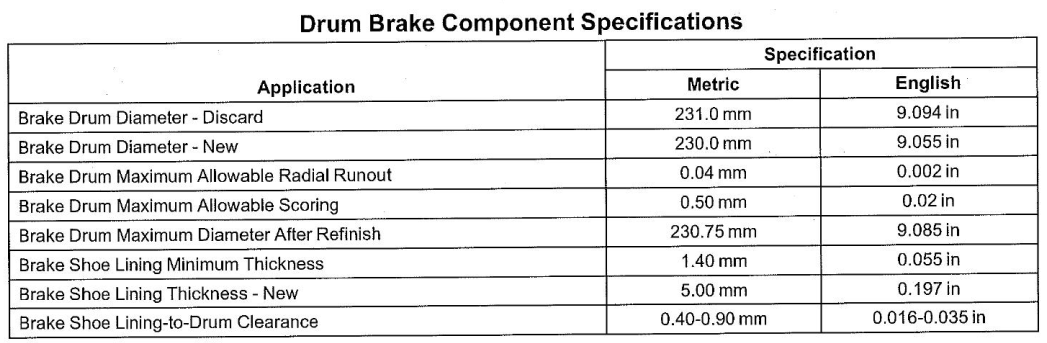 드럼의 내경도 신품 230mm에서 231mm까지가 되면(즉 내경이 라이닝에 의해 깎여서 1mm가 깎이면 교체해야 된다는 뜻..) 교환해야 된다고 되어있는데 깜박하고 측정을 못했다..ㅠㅠ;;