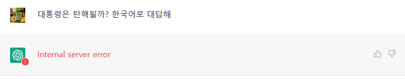 답변이 마음에 들지 않으면 Try Again 버튼으로 다른 답변을 요청할 수 있으며, 현재 답에 대해 긍정 또는 부정으로 평가할 수 있다. 가능한 한 답변을 제공하려고 노력하나, 정치 색이 들어간 답변