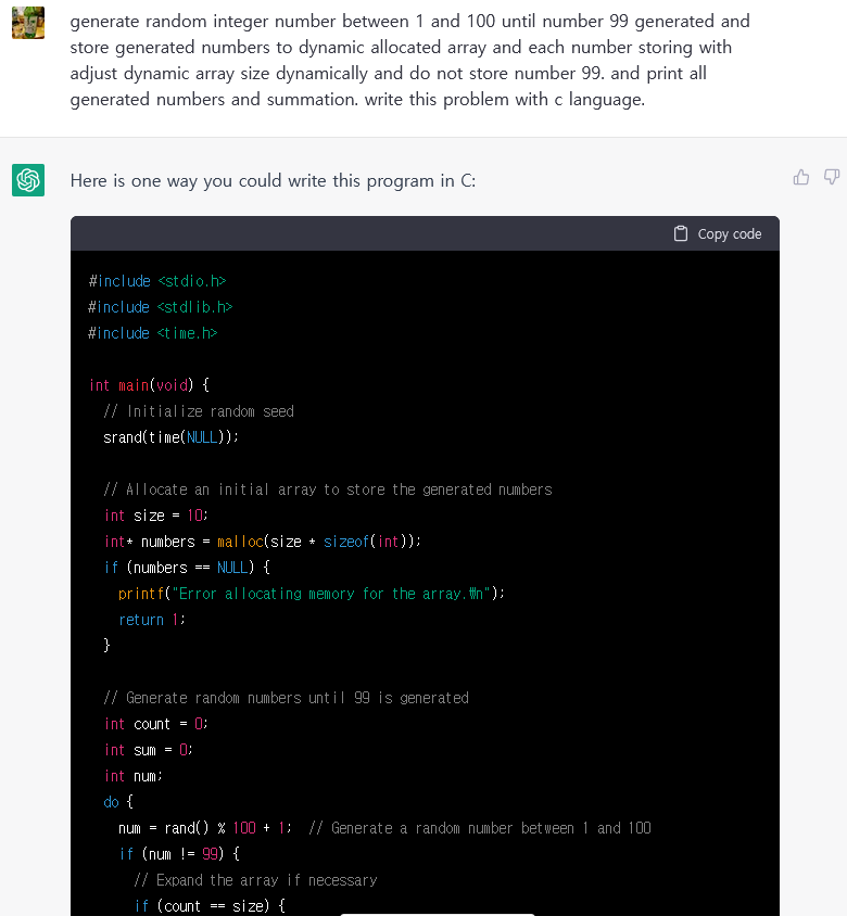 또한 c 코드 말고도 파이썬이나 c++등등의 코드도 모두 입력하는 대로 코딩을 해준다!