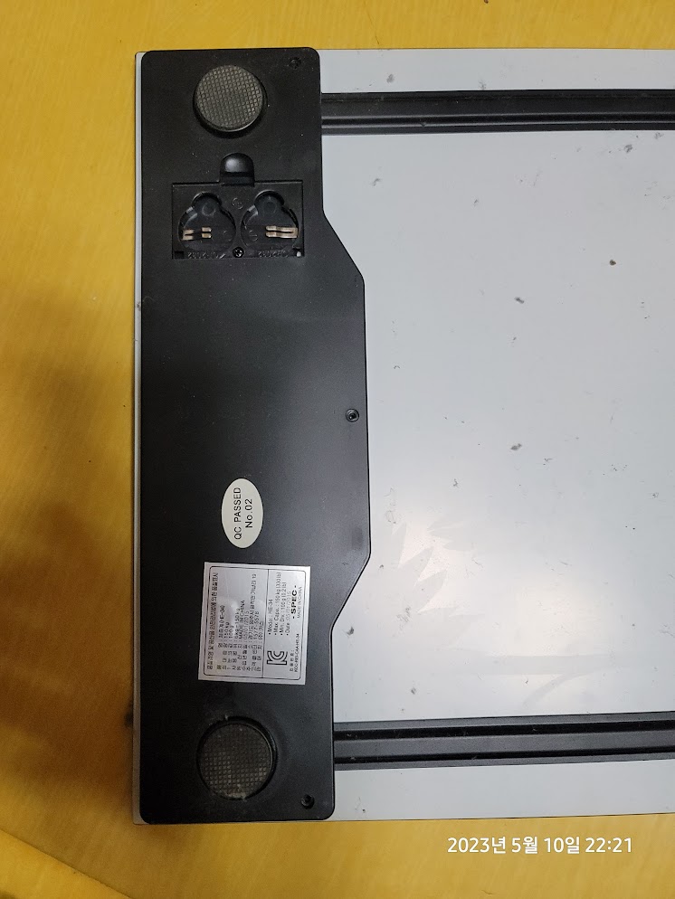 동작을 확인하였으니... 대충 테이프로 절연을 해주고 잘 조립하여 놓았다. 몸무게 측정시에만 어댑터를 꼽든.. 어댑터가 꼽힌 멀티탭의 전원을 올려서 사용하면 된다.