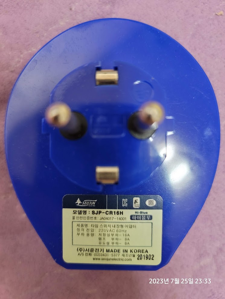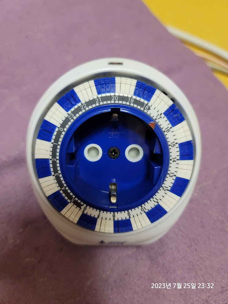 소모전력이 상당한지라 계속 켜놓을수는 없고(온수기 자체적으로 온도조절 다이얼이 있으나 낮은 온도로 설정해놓아도 꽤나 온도가 높아지는 편이다.) 24시간중에 원하는 시간에 켜놓을 수 있는 주변에서 흔히 볼 수 있는 아래와 같은 제품으로 콘센트에 연결을 해놓았다.