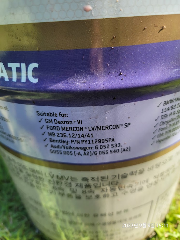 미션오일은 지난번에 교환하였던 토탈쿼츠 플루이드매틱 MV LV 가 10리터 넘게 남아있었다 ㅎㅎ