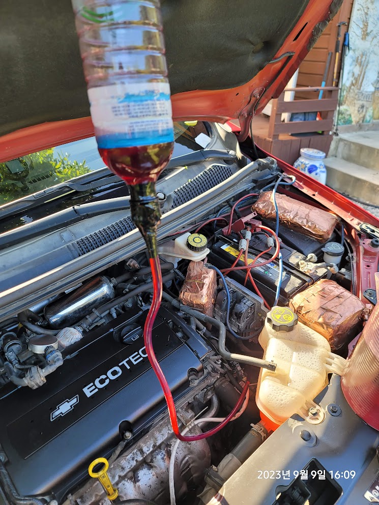 여러 액체류 교환중(엔진오일/미션오일/냉각수/브레이크액/워셔액) 아주 만족감이 높은 교환이었다.