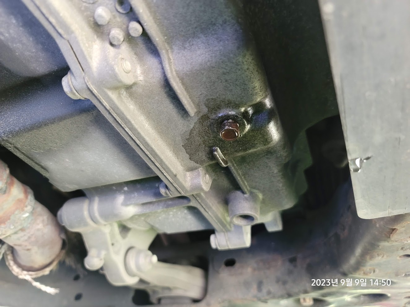 드레인 플러그와 반대편쪽으로 유증기 때문인지... 약간의 오일비침이 보여 깨끗하게 닦아주었다.