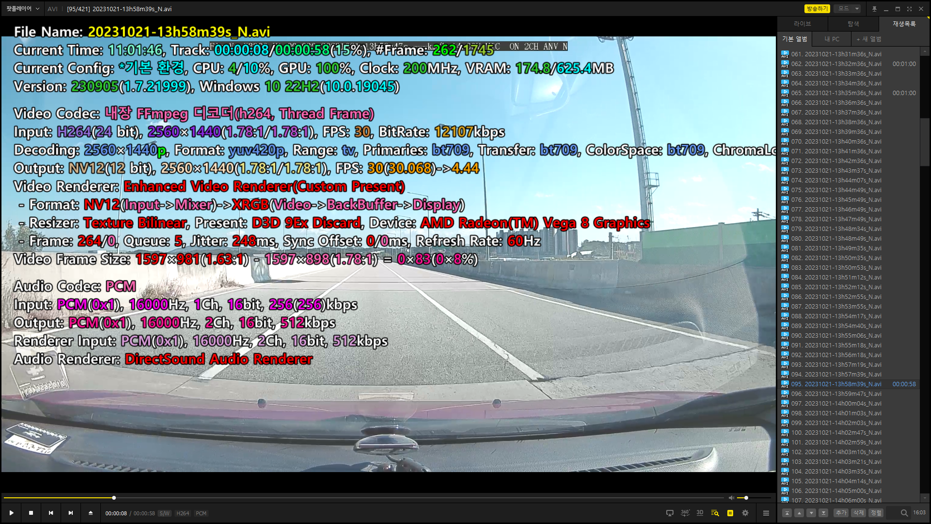 다른 플레이어로 재생해서 재생정보를 보니 전방의 경우 QHD 화질이 맞긴 맞다..ㅎㅎ
