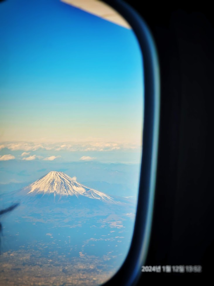 하네다 공항 도착전에 창밖으로 보이는 후지산.