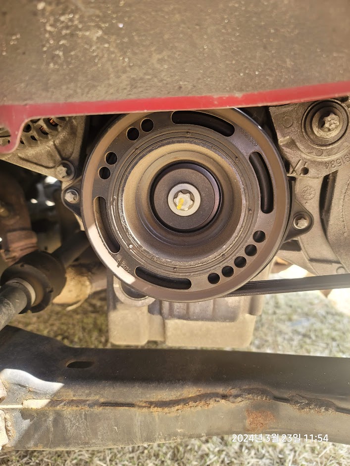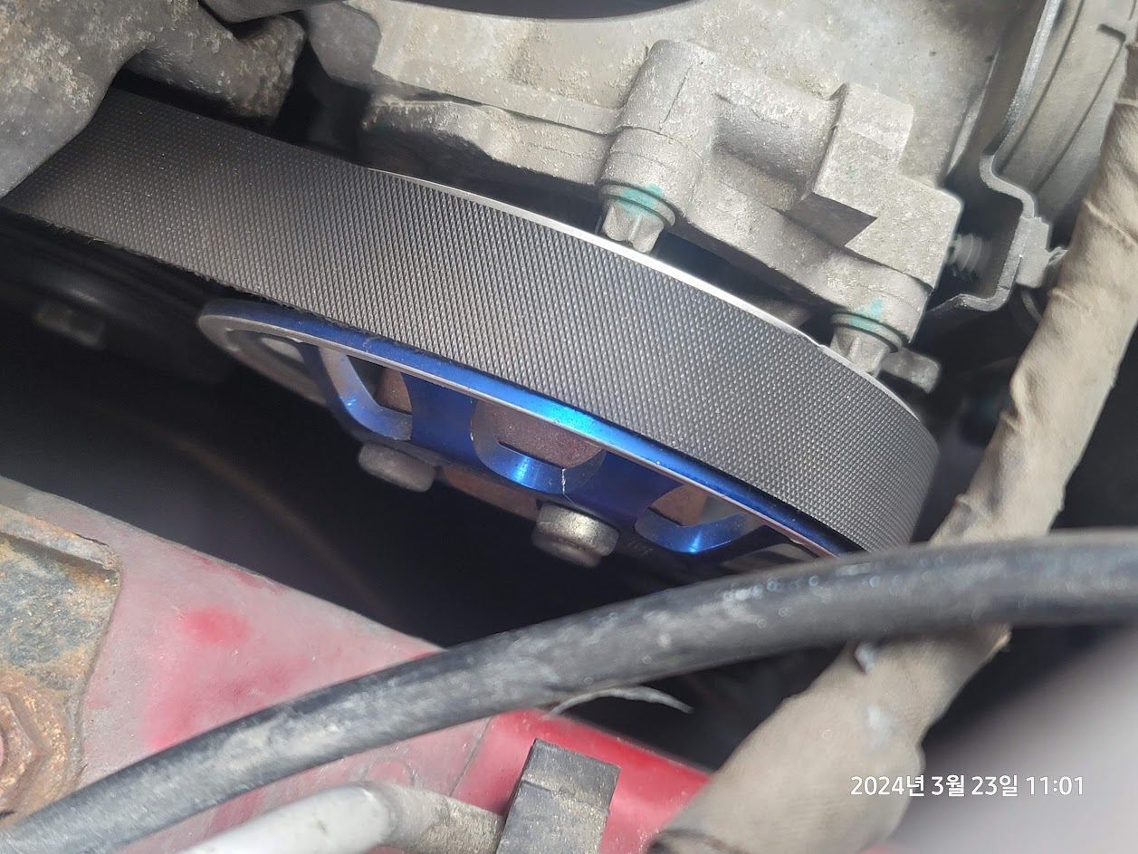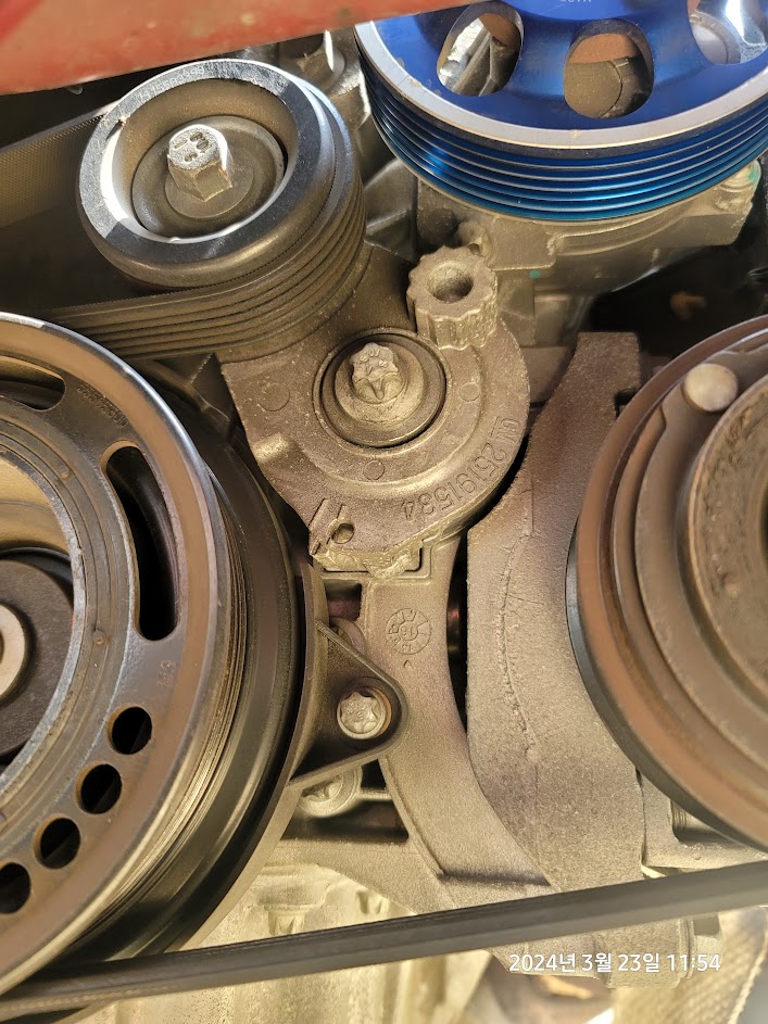 이후... 오늘 삽질하는데 한몫을 한... 겉벨트 텐셔너를 확인한다...(아직 벨트탈거는 하지 않았다. 왜냐하면 아직 워터펌프 풀리의 볼트를 풀지 않았기 때문에 ㅎㅎ)