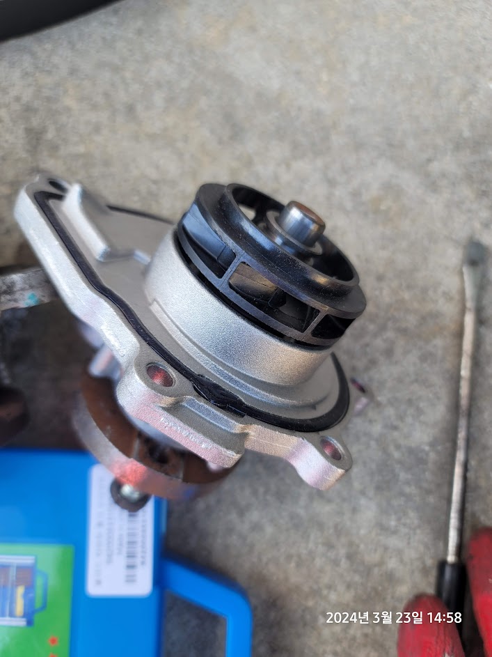아 그리고 푸는 김에 워터펌프도 같이 풀고 교환하였다.