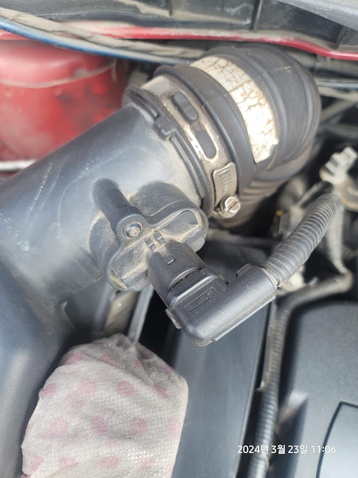 엔진룸 에어클리너 박스쪽 MAF 센서를 뽑고... 에어클리너를 제거하는 것으로부터 작업이 시작되었다...