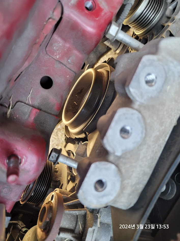 일단 저기부터 막히기 시작했으나... 뭐안되면 워터펌프는 갈지 말자라는 생각으로 쿨하게 넘기고 넘어갔다 ㅋㅋㅋㅋ(이후 엔진마운트를 제거하고 나서 엔진을 올리고 풀게 된다 ㅎㅎ)