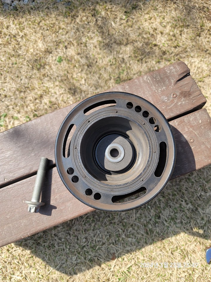 커버를 탈거하면 이제 바로 크랭크풀리에 접근이 가능하게 된다.