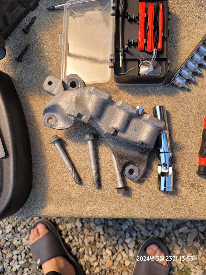 엔진마운트 볼트 및 너트는... 임펙트렌치로 수월?하게 풀렀으나.... 이 과정에서 오늘의 아주 크나큰 삽질을 하나 하게 된다...ㅠㅠ;;;;