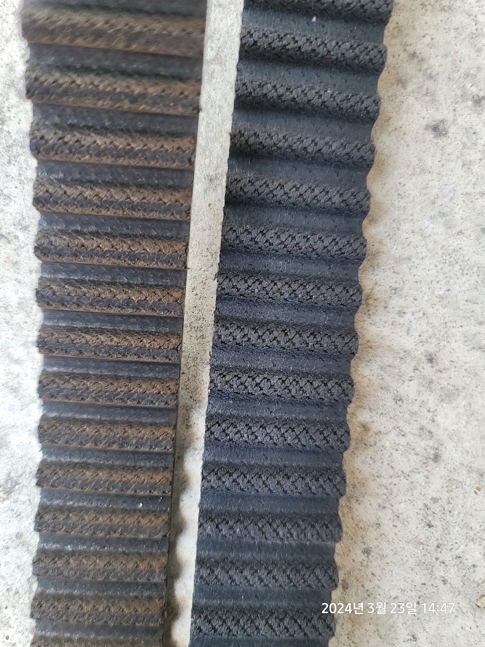 다만 확실히? 살짝 두께가 얇아진 느낌은 든다.(타이밍벨트 품번이...바뀐것으로 아는데... 개선품이 두꺼워진것인지.. 원래 두께에서 열화되어 얇아진 것인지는...판단불가 ㅎ)