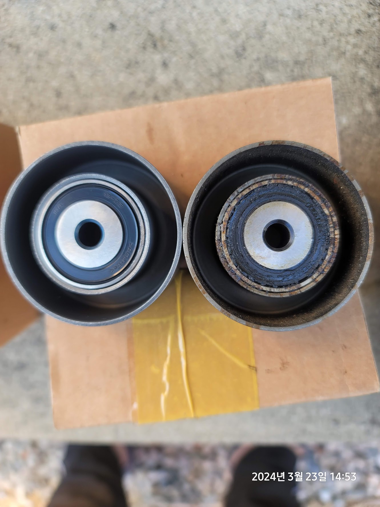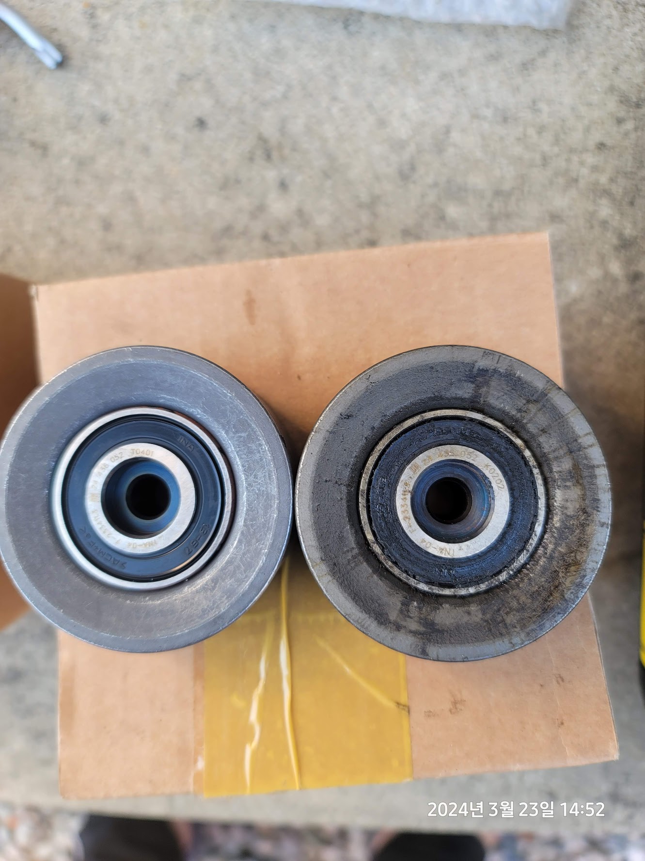 최근 타이밍벨트를 교환하면서(아래글 참조) 여러부품을 탈부착하였는데 이중 눈에 띄게? 상태가 안좋은 부품은 아이들러 풀리 1개뿐이었던 것 같다.