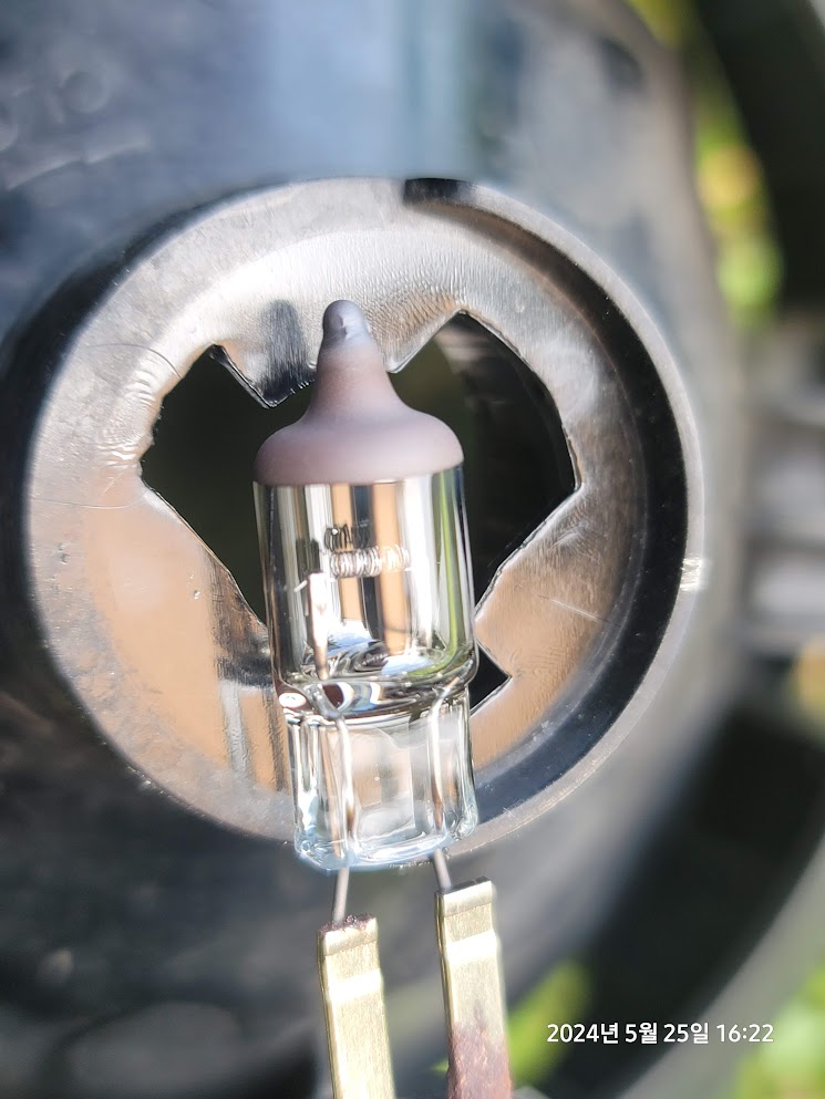 램프를 교환한 후 커넥터를 끼우고 나사체결하기 전에 혹시나 하여 테스트를 해보니 위와 같이 잘 켜진다.