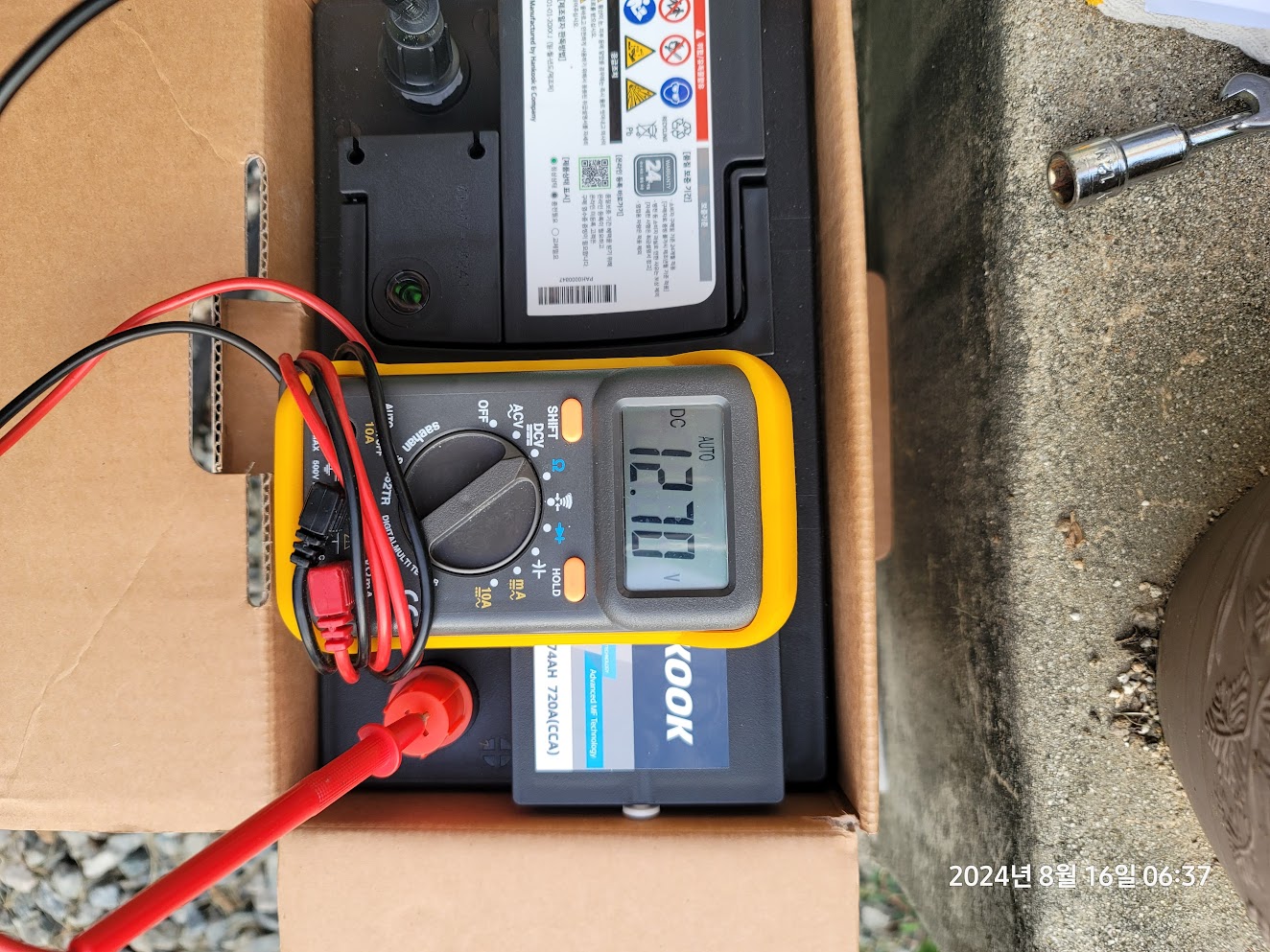 박스에서 꺼내기 전에 전압을 측정해보니 12.7V로 아주 양호하다.