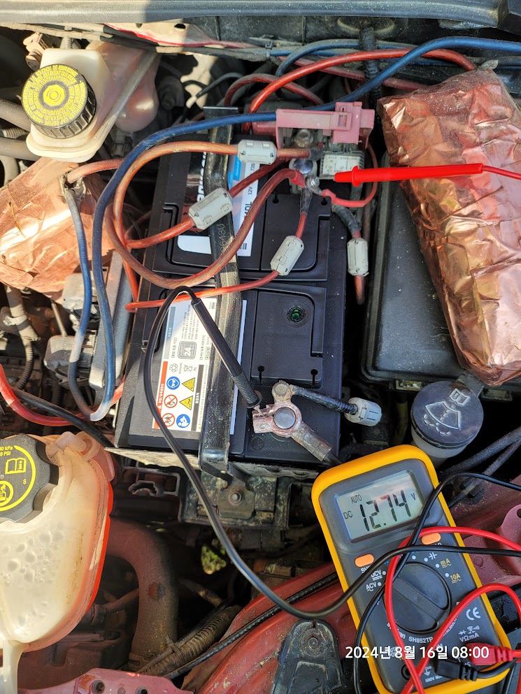 1시간 이상 주행했음에도 하루 방치하고 전압을 측정해보니 11.73V 로 시동걸기에는 아리까리한 전압이다.(일발시동은 되나 크랭킹 시간이 좀 더 길어졌다. 좀 더 방치하면 아마 이러다가 시동이 안걸리는 상태가 될듯.)