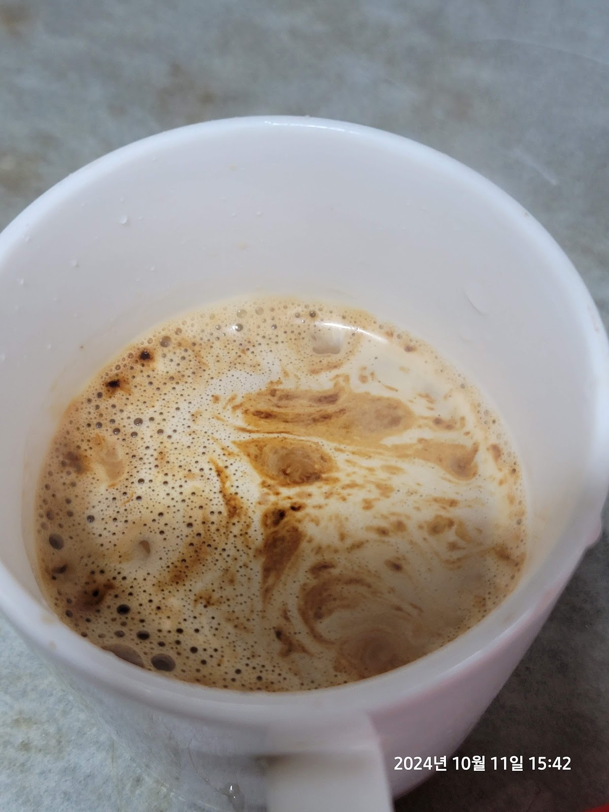 사진과 같이 보기에는 전혀 문제가 없고 향기도 보통의 커피믹스와 차이가 없다.