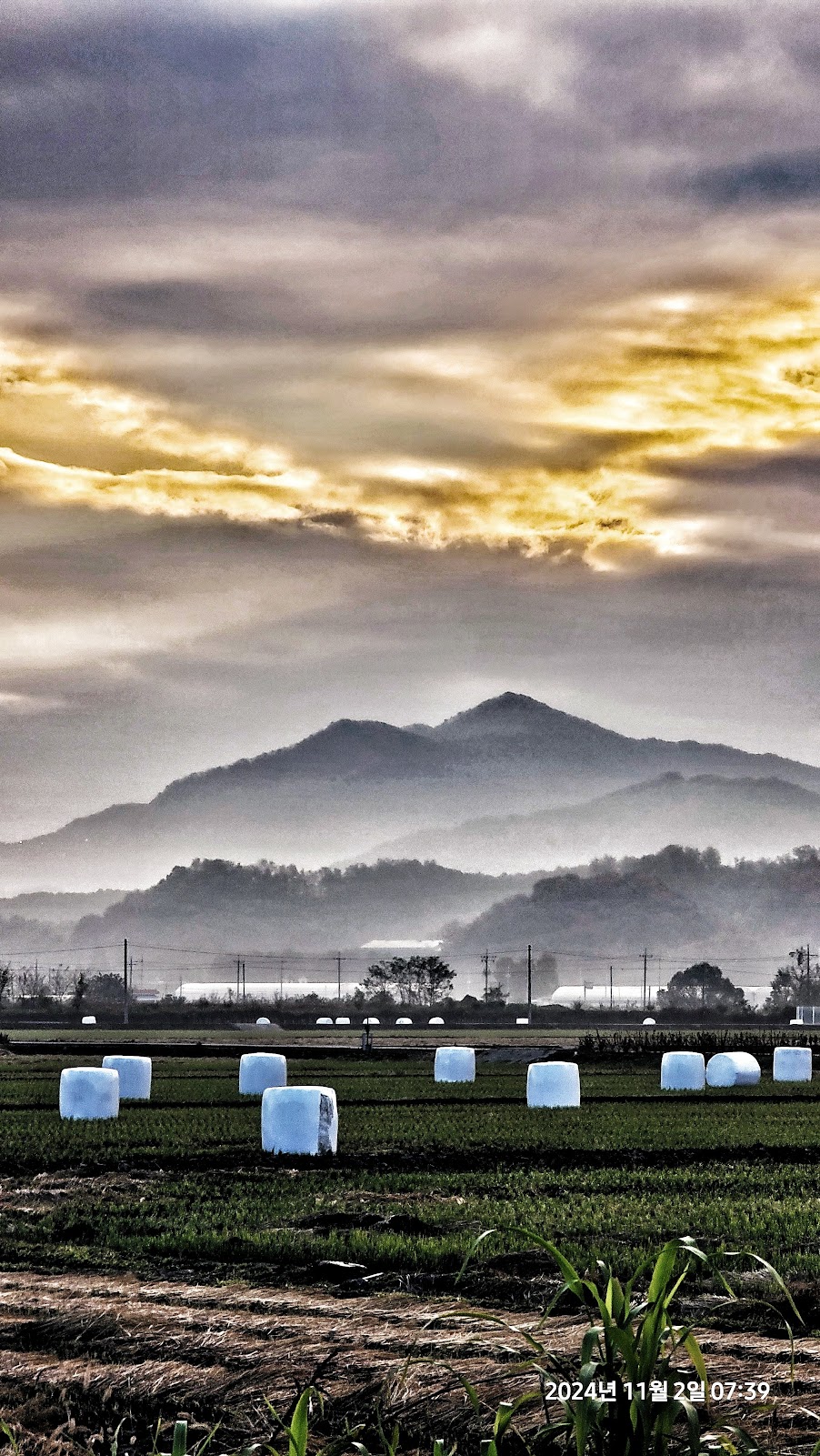 아침에 늘상 다니는 길로 산보를 나가보니 들녘에 일명 초대형 마시멜로라고 부르는 곤포사일리지만 보이는 걸 보니 추수는 이제 모두 끝난 모양이다..