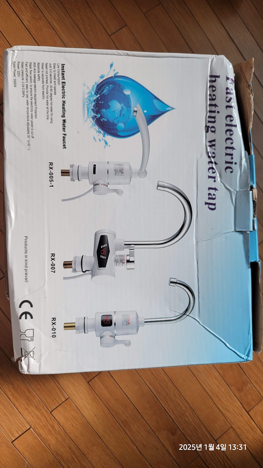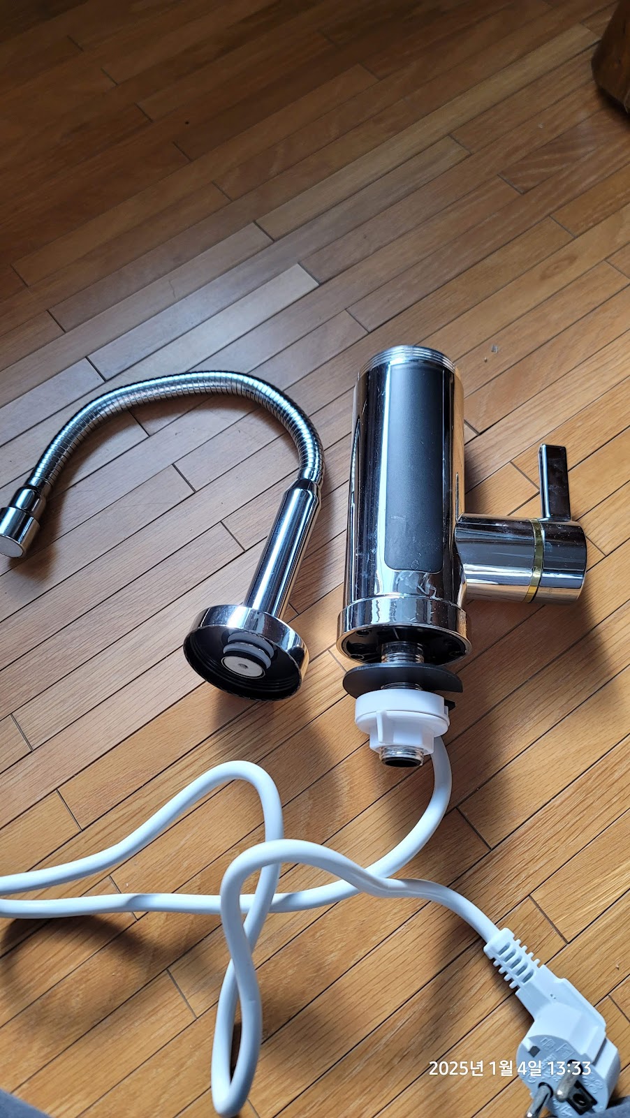 전원을 연결하고(이런류의 전기순간온수 수전들을 대부분 소모전력이 3000w 이다.. 220v 기준 약 13.6A 이상을 견디는 전선이 사용된 멀티탭이나 전선을 사용하여야 한다..) 온수를 틀어보니 물이 시원하게 나오지는 않지만 약 10초 정도 기다리면 꽤나 뜨거운(약 40~50도 정도) 물이 잘 나온다.. ㅎ