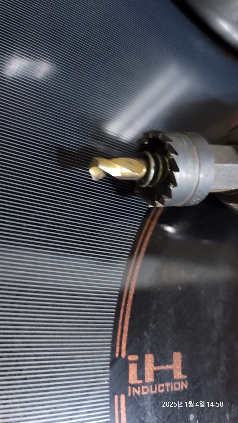 홀커터를 이용하여 싱크대에 구멍을 내어주고(직경이 대략 22mm 정도였던가...)... 수전을 설치하였다.