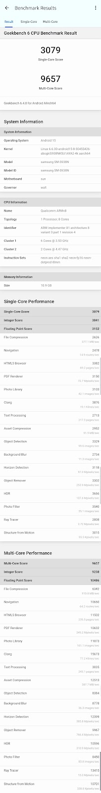 | S25 울트라 Geekbench 6 Result | 노트20 울트라 Geekbench 6 Result | ||