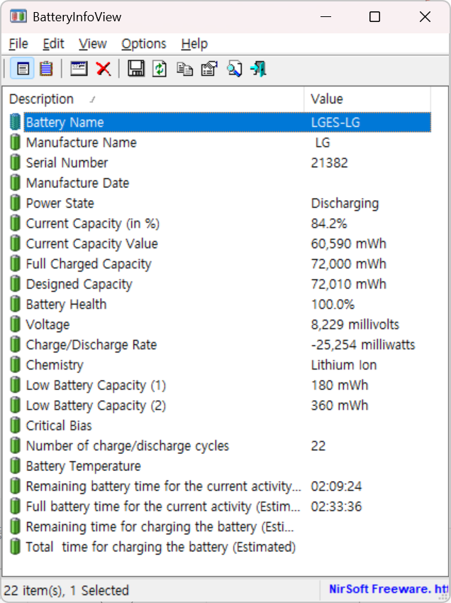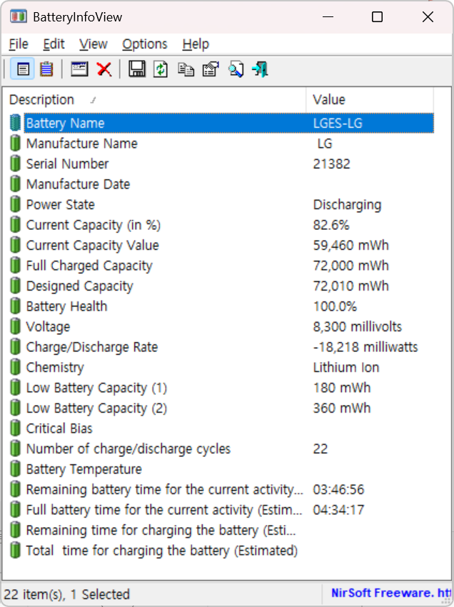 위와 같이 각 전원구성표 선택후 배터리 방전 수준을 보면(그냥 아이들상태(cpu load 10~20%)로 두긴 했지만 백그라운드 앱들에 의해서 오차가 있긴 하겠으나...) 최고의 성능 전원구성표 때가 약 7W 정도 더소모하는 것을 볼 수 있다.
