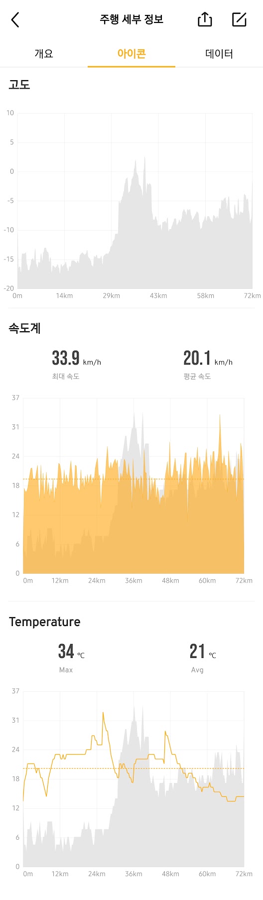 온도는 달리기 딱 좋은 날씨였으나 바람은 좀 심하게 불었다. 온전히 자전거 안장위에 앉아있었던 시간은 3시간34분이고.. 출발해서 도착까지 걸린 시간은 4시간54분.. 평속도 대폭 떨어지고..ㅎㅎㅎ 작년 9~11월 한참 열심히 주중에도 일찍 퇴근하는 날이면 타던 때와 비교하면 꽤나.. 느려지고 게을러졌다. 역시 주말에만 타는건 크게 체화되는데 있어서 도움이 되지 않는 모양이다.
