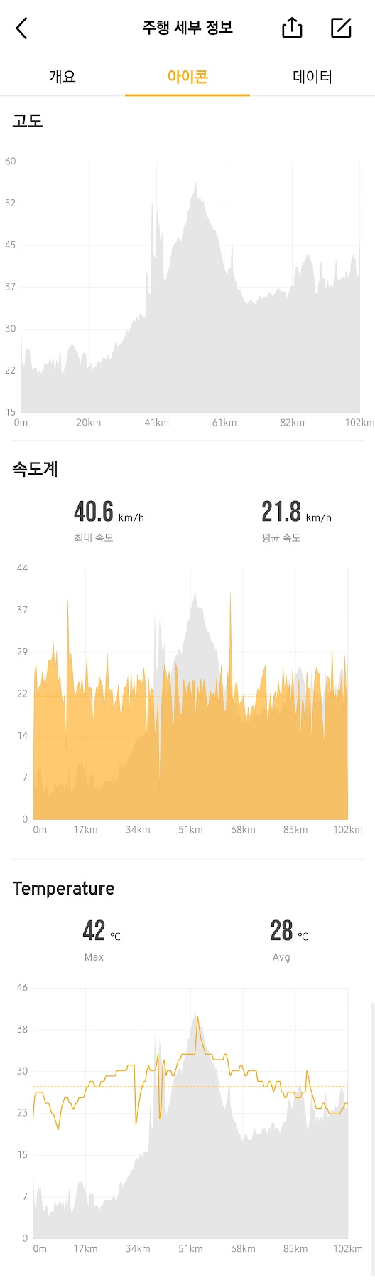 매번 70~80km 정도만 타다가 오랜만에 100km 이상을 탔더니 돌아오는 길 막판에는 너무 힘들어서 정신이 오락가락했다..ㅎㅎ..