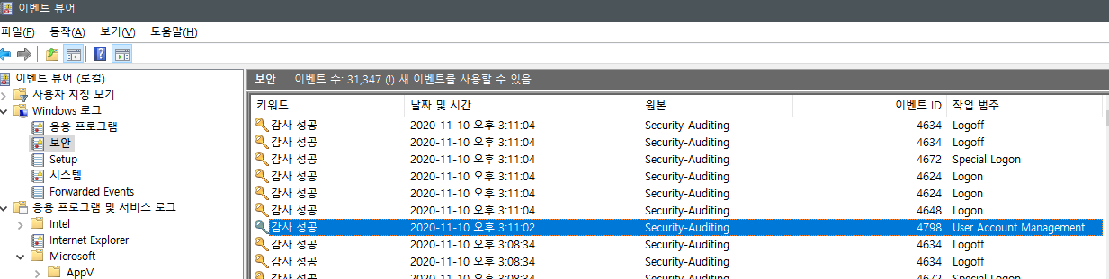 이때 필요한 것이 windows event viewer 이다.