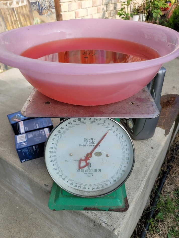 냉각수도 드레인을 하고 달아보니 대략 5리터 가량 배출되었다.(흠... 저 수치도 좀 이상..ㅎㅎ...)